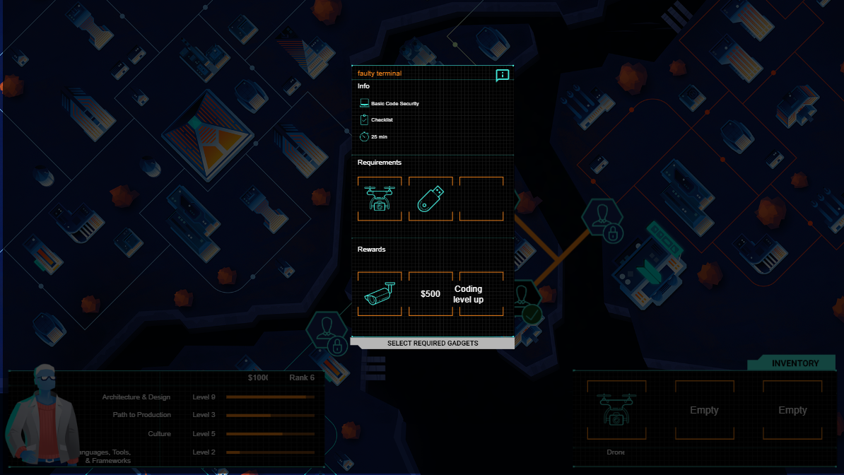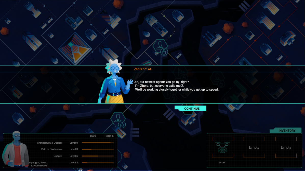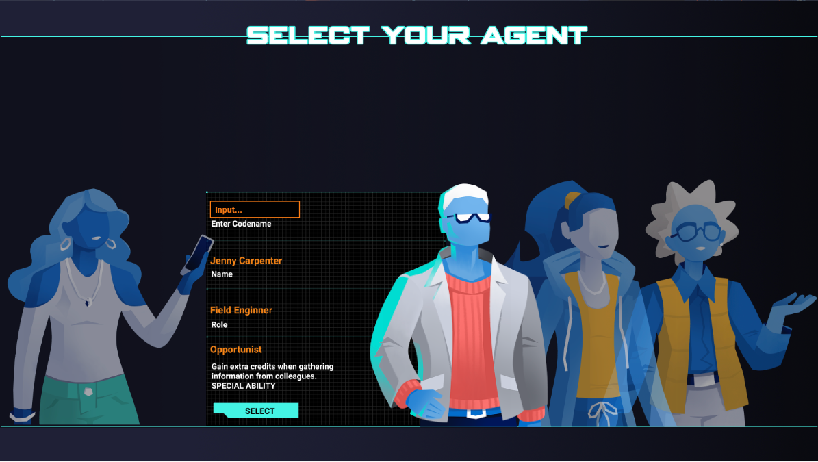 This spy themed dialog game was made as a training course for American Express engineer employees. I used adobe software, Figma for low and high fidelity static design, and Protopie for the in depth prototyping with logic and animations. this greatly helped the clients, team, and engineers to see and understand the game visually and programmatically . Then, the final version of the game was created in Unity. There, I worked with the engineers to set up the ui scenes, prefabs, and other Unity tasks.